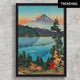 Lake Ashi in the Hakone Hills is a picturesque and serene body of water located in the Hakone region of Japan. The lake is surrounded by lush, verdant hills, and is often depicted in art as a place of natural beauty and tranquility. One such depiction is a print by the famous Japanese artist Tsuchiya Koitsu, entitled "Lake Ashi in the Hakone Hills in Early Autumn." The print captures the idyllic and ethereal ambiance of the lake during the autumn season. The water is depicted as a tranquil expanse of serenity, with the autumnal hues of the surrounding hills providing a striking contrast. The image is a feast for the eyes, with the intricate details of the trees and the reflections on the water, as well as the use of vibrant colors, creating a harmonious and evocative scene. It is a true masterpiece that showcases the artist's virtuosity in capturing the essence of the lake in the most picturesque time of the year.