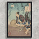 "The Village of the Shi Clan on a Moonlit Night" is a captivating print created by the renowned Japanese artist Tsukioka Yoshitoshi. The print depicts a tattooed man, adorned with intricate and bold designs, standing in the center of a village. The village is bathed in the pale light of the full moon, casting a ethereal glow over the scene. The tattooed man stands out as the focal point, with his bold tattoos serving as a striking contrast to the serene and peaceful village. The print is teeming with visual interest, from the intricate details of the tattoos to the soft, misty atmosphere of the moonlit night. It is a fantastic example of Yoshitoshi's ability to blend traditional Japanese art with a modern sensibility.